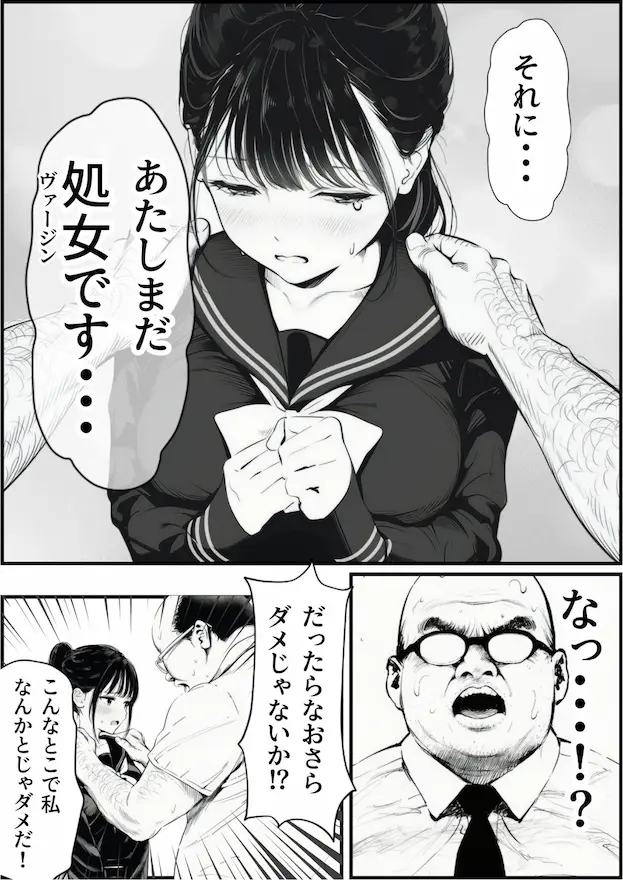 • 制服処女×中年おじさん×体格差×連続中出しと、男向けド定番性癖を全部ぶち込んだ内容