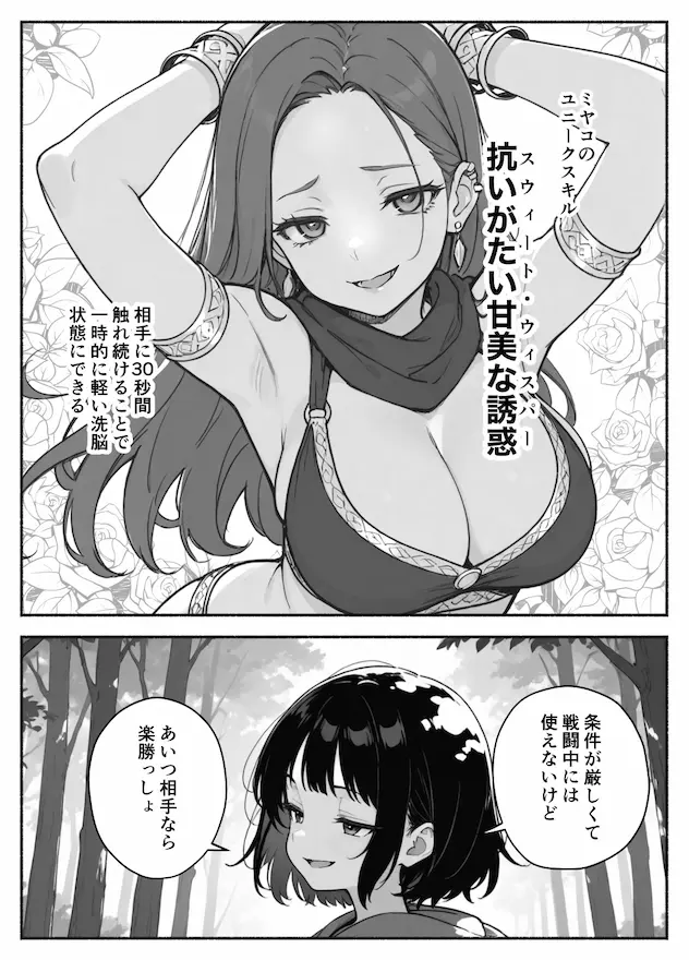 リンに敵意むき出しのツンツン剣士ココも、はんなり踊り子お姉さんのミヤコも、「理由を問いただす」つもりで詰め寄ったはずが、気付けばサトルのスキルに絡め取られて、服どころか理性までまとめて剥がされていきます。