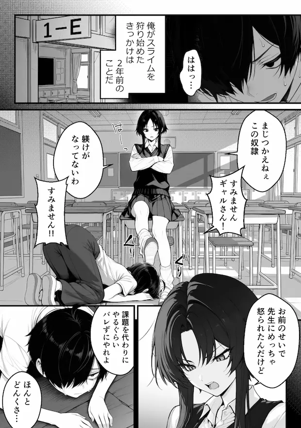 異世界に来ても状況は地獄のままで、スライム相手に命を削りながら日銭を稼ぐ主人公を、ギャル達は笑いものにし、クズみたいな言葉で心を踏みにじり続けます。