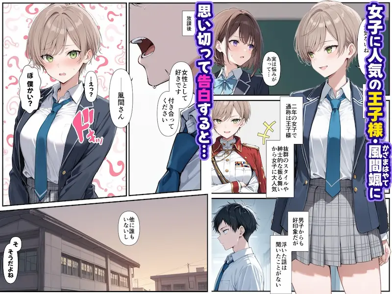 学園で「王子様」扱いされているイケメン系ヒロインが、告白してきた男子の前でだけ理性を捨てて、どんどん“雌”として蕩けていく過程を描いた、ラブコメ寄りのエロ同人漫画です。恋人同士の甘さと、性欲ダダ漏れのえげつないエロがガッツリ両立しているのが特徴です。